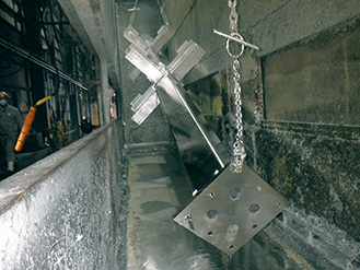溶融亜鉛めっきは加熱して溶解させた亜鉛に鉄鋼製品を浸漬し、鉄と亜鉛を合金化して強固なめっき被膜を形成させる処理です。亜鉛の融点は約420℃であり、めっき浴の温度はそれ以上の高温となっています。高温のめっき浴に鉄鋼製品を浸漬するので、鉄鋼製品を設計する上では留意点があります。一般的に認知されている装飾等で使用されている電気メッキと溶融亜鉛めっきは異なります。装飾用の電気メッキは美観に優れ均一で光沢のある仕上がりとなっています。溶融亜鉛めっきは電気メッキのような美観を得る事はできませんが優れた強度と耐食性を持っています。